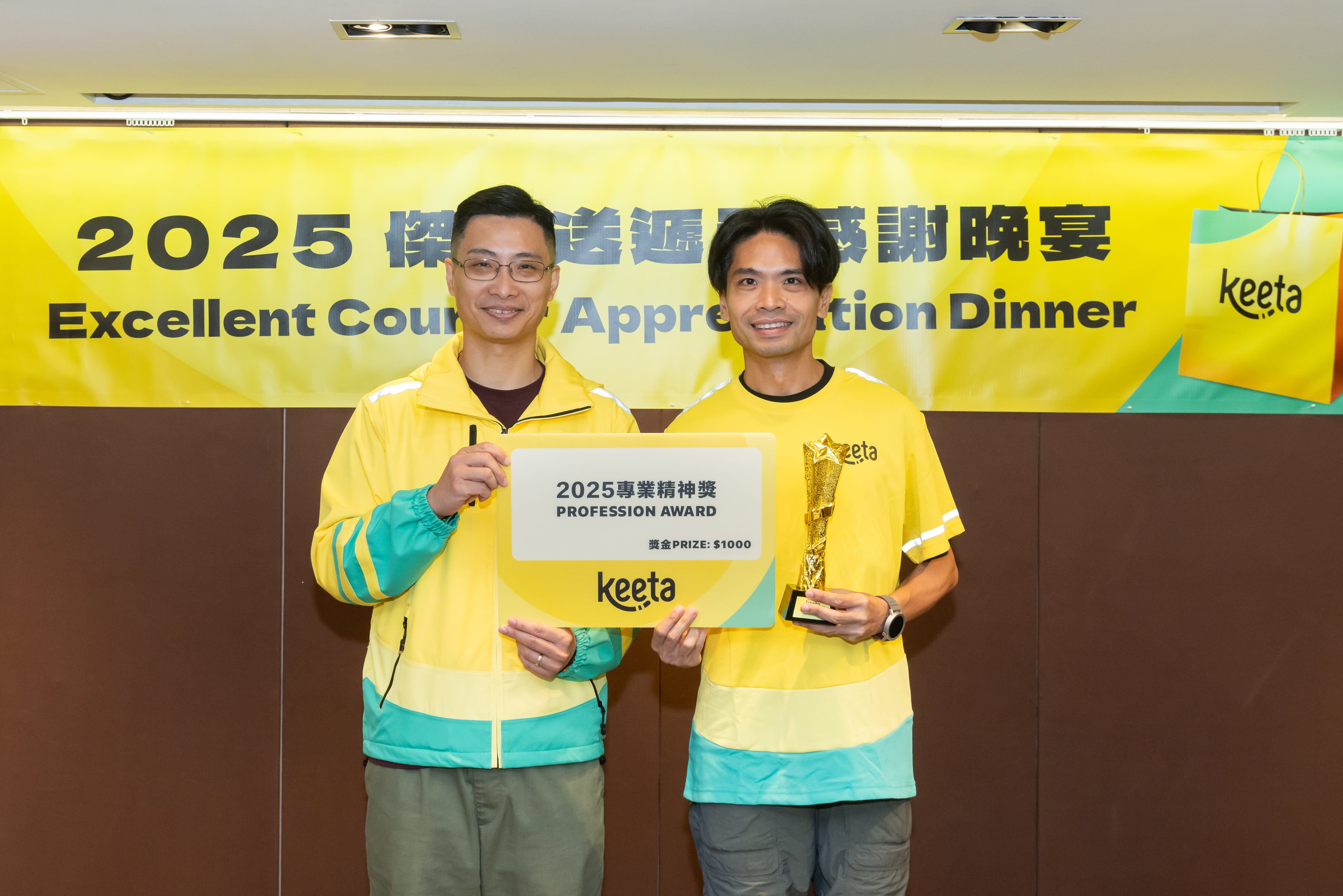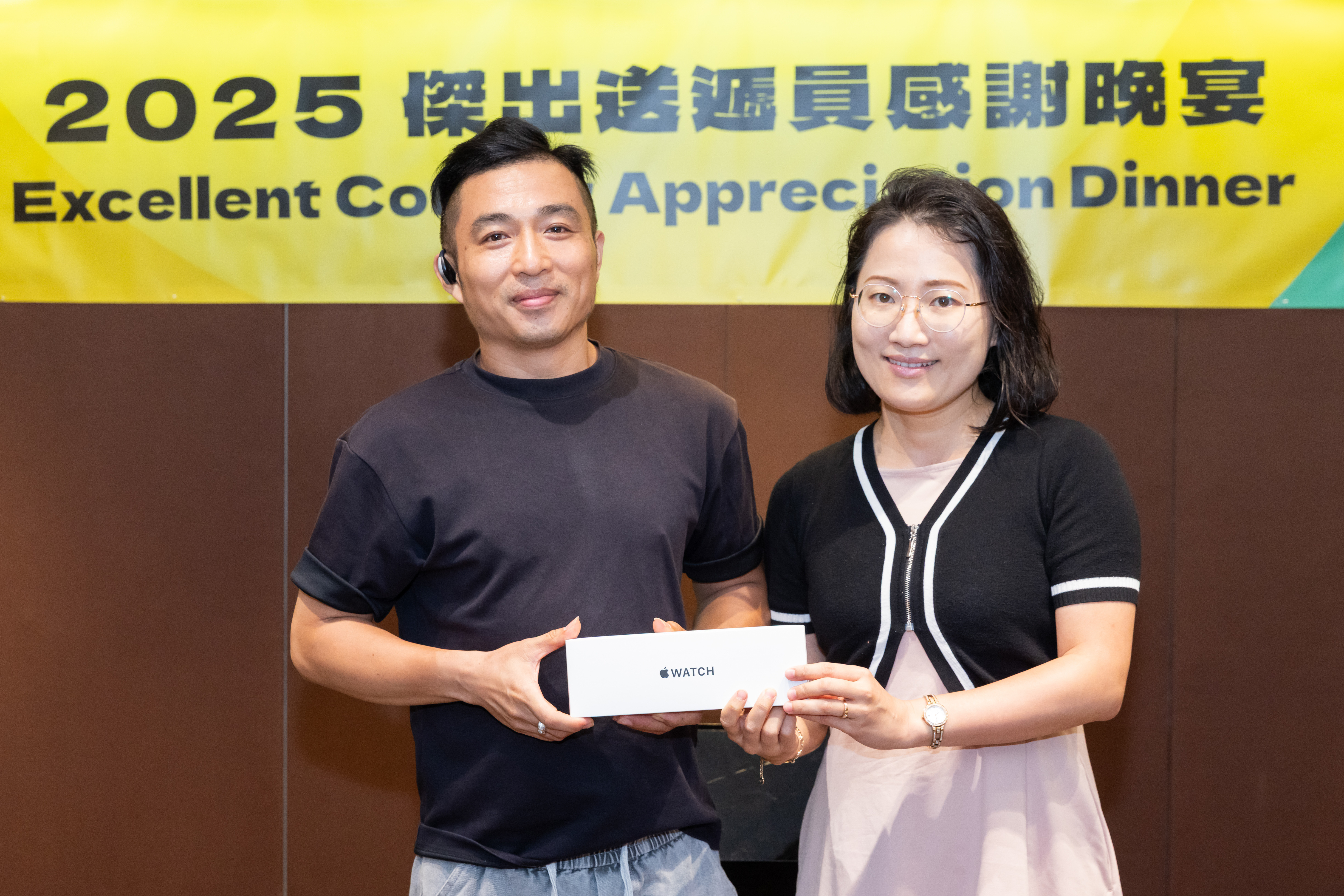 當晚共頒發兩項獎項:「傑出貢獻送遞員獎」以完成訂單量、準時率及好評度為綜合評分標準,嘉許在各方面均有突出表現的送遞員;「專業精神獎」則表揚在配送服務中展現出高度敬業態度及細心關懷的送遞員夥伴。每位獎項得主均獲得現金獎勵,並以其專業表現樹立正面典範,激勵所有送遞員持續追求卓越。