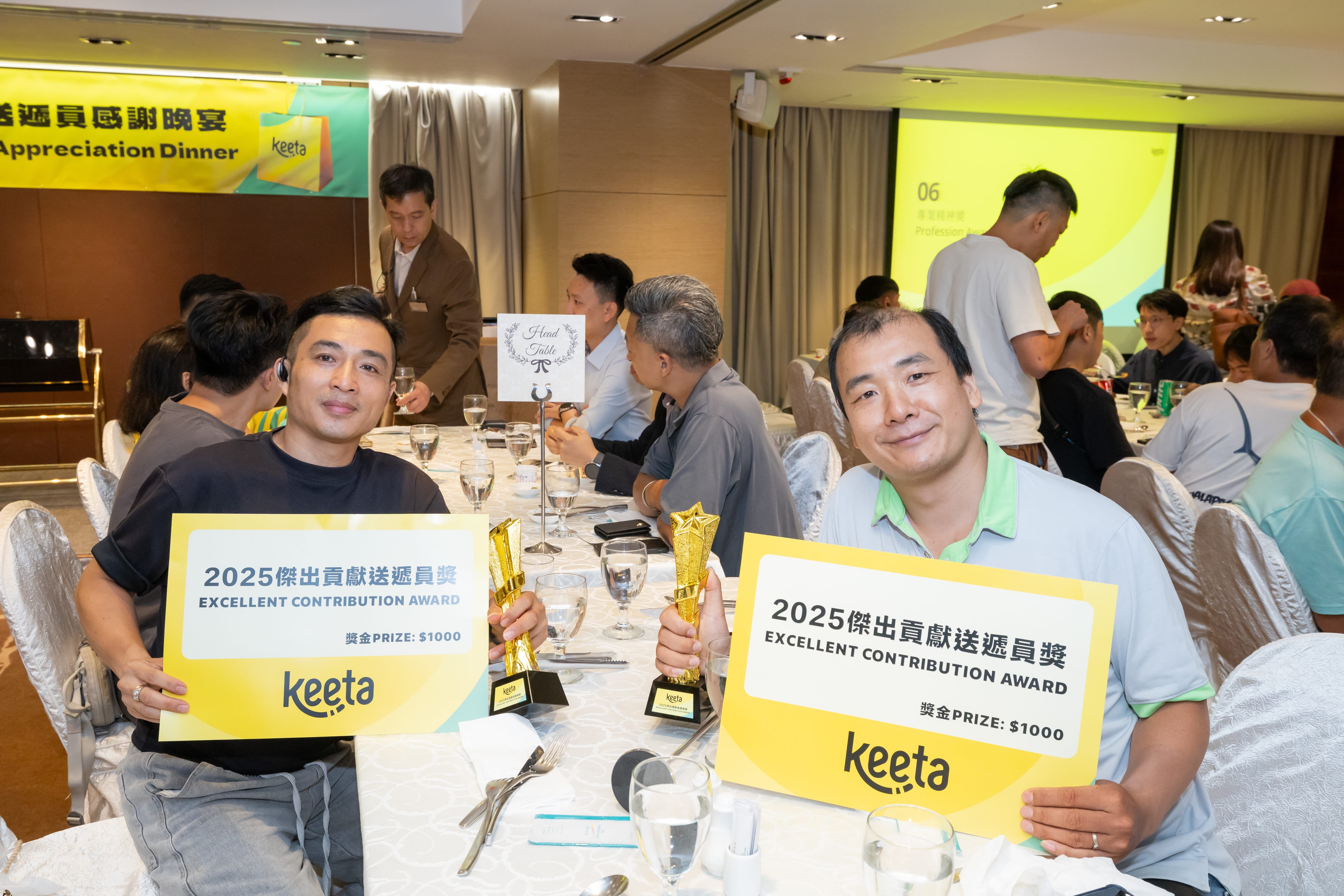 Keeta本年度首次舉辦「送遞員感謝祭」,第一輪活動向表現傑出的送遞員送上「香港足球盛會2025」表演賽、公開訓練門票或超市禮券。而第二輪活動為「傑出送遞員感謝晚宴」邀請了過百名表現卓越的送遞員及其親友共200人參與。特別為表現卓越的送遞員和其親友舉辦專屬晚宴,是平台對配送團隊辛勤付出的高度肯定。